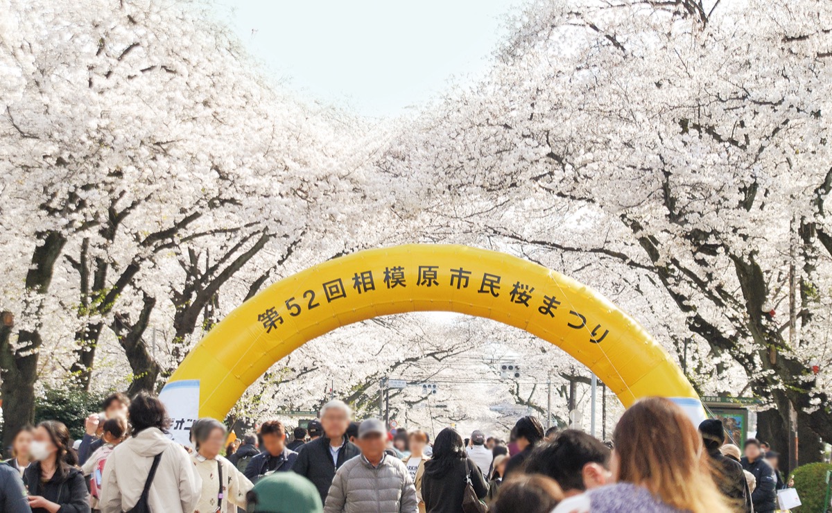 52回目となる相模原市民桜まつりが4月5日、6日の2日間、市役所さくら通りを主会場に開かれた。界隈の桜は満開の状態で、多くの人が通りを埋め尽くした=写真。