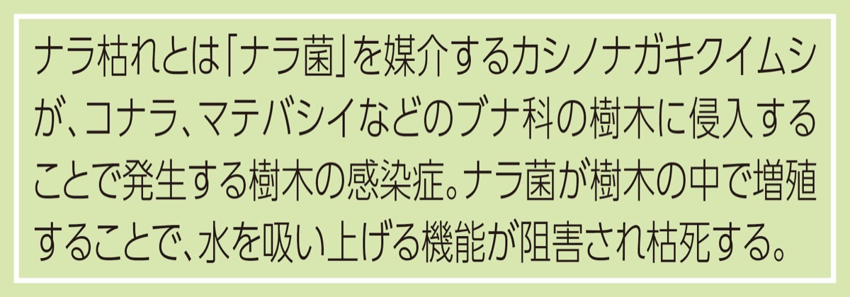 一方で市内のナラ枯れについて市担当者は「昨年、新たに虫が侵入した形跡のある樹木はほぼなかった。今後ナラ枯れ被害は減少していくと予測している」と話す。