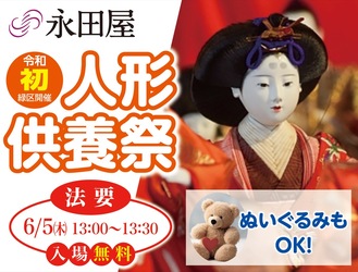 創業百十二年目、相模原に本社を構える老舗葬儀社・永田屋はメモリアルハウス城山で人形供養祭を開催。6月4日(水)、5日(木)に引き取りを受け付ける。予約不要。
