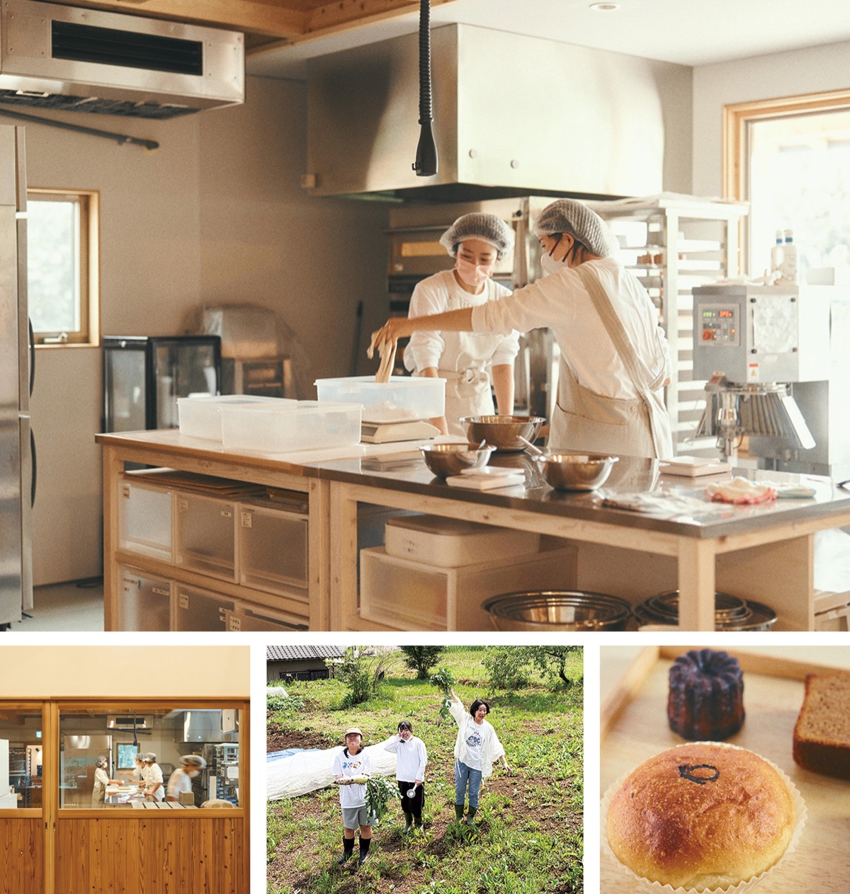 同所では「障害の有無に関係なく、関わる人が自分の出せる力を合わせて一つの物を作り、それをお客様に届ける」という思いで日々活動。店舗併設で作ったパンが売れる喜びを直に体験でき、それが働きがいや活動意欲につながっている。事業所の雰囲気は和気あいあい。パン製造のほかに畑での作業、イベントでの販売活動も行う。「人と話すだけではなく、製造や接客を通して人との関わりを学んでほしい」と井上映伸社長。価値ある物を生み出し、正しく評価して世の中で活かす対等な関わり「ウェルフェアトレード」を目標に、仕事へのプロ意識や収入、やりがいの向上、社会参加を目指す。
