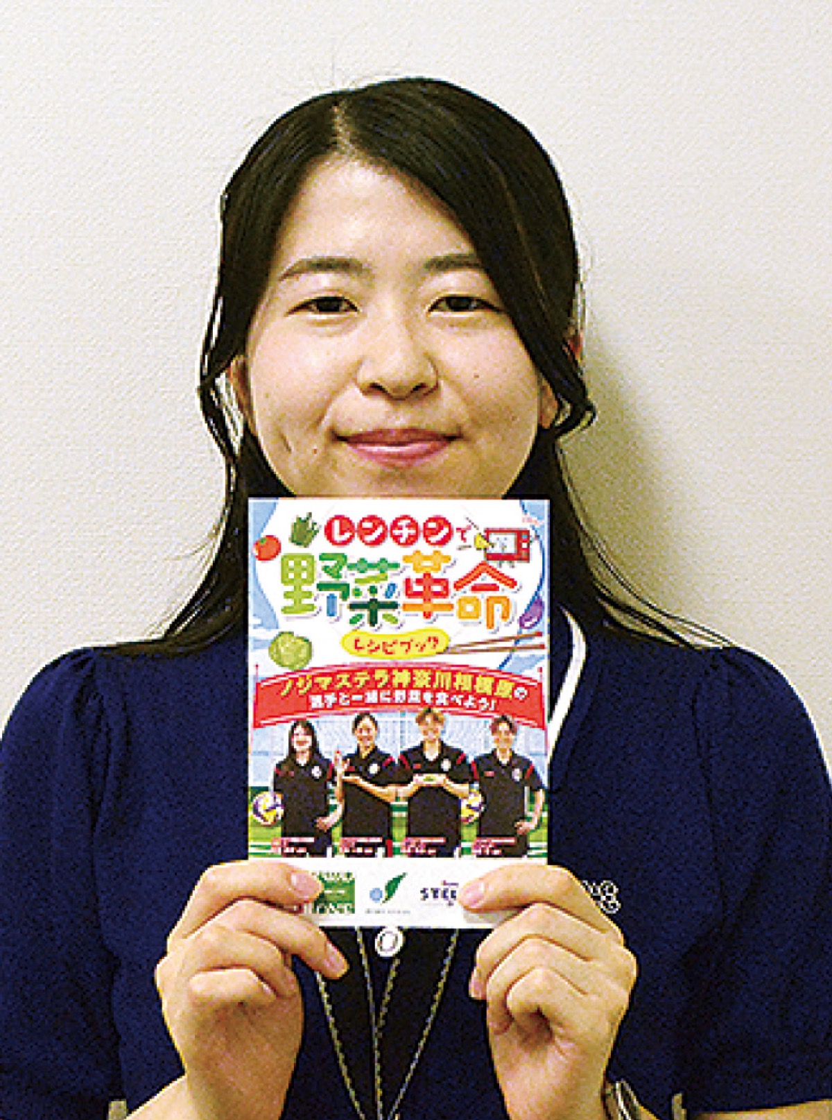 食に関心を持ち健康的な食生活を送ることを目指した「食育」に関する取り組みの一つ。冊子にはノジマステラの選手が登場し、手軽に野菜を摂取できる「レンチンレシピ」を紹介している。メニューは「鶏ひき肉とキャベツのガリバタレンジ煮」など、簡単に作れて栄養価の高いものが中心。選手による試食コメントも添えられている。