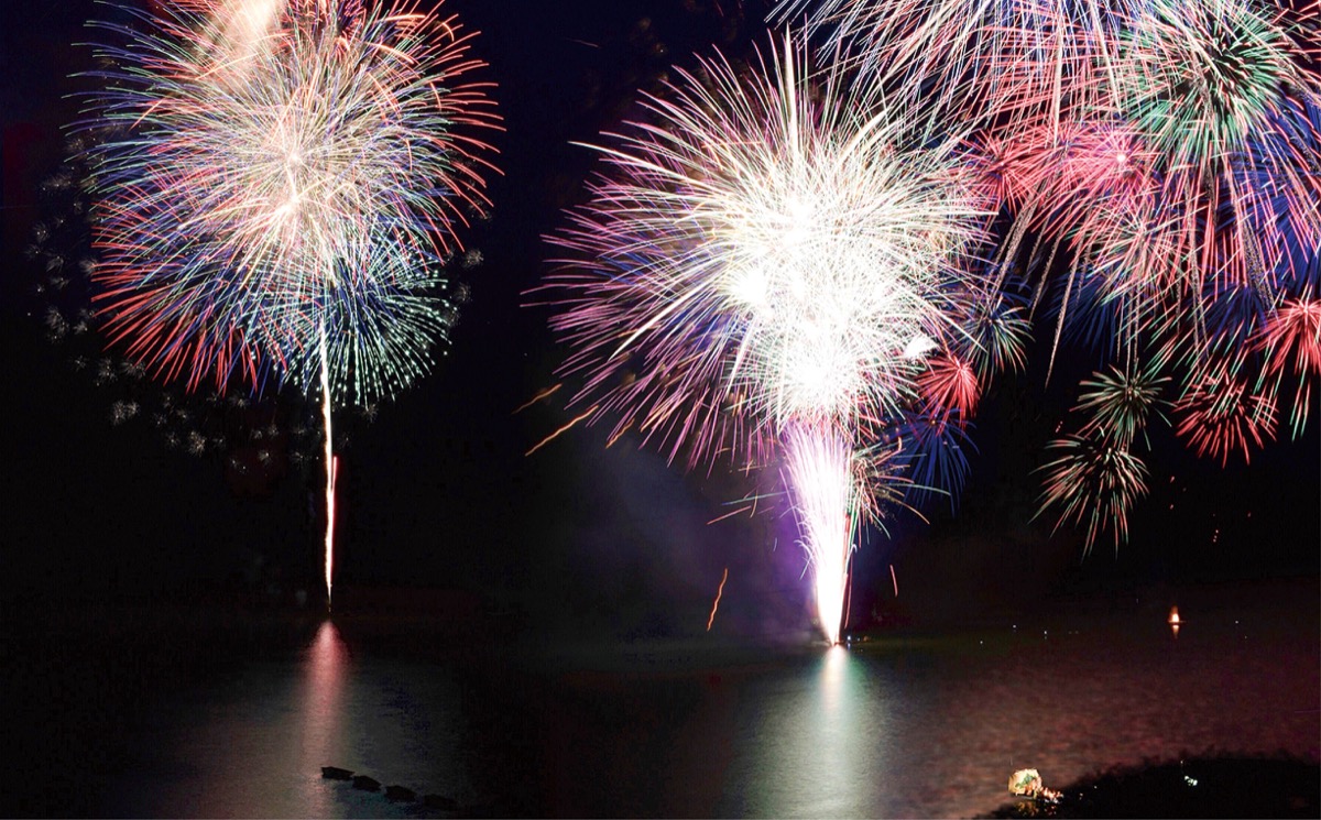 打ち上げ数は約4千発。尺玉、尺五寸玉、スターマイン、空中ナイアガラなど、多数の種類の花火が打ち上がる。会場の周囲が山に囲まれている地形のため、音が体に響き、光が湖面に生えるという稀なロケーションの中で花火を体感できる。会場では、湖上囃子の演奏、夜店も多数出店の予定。