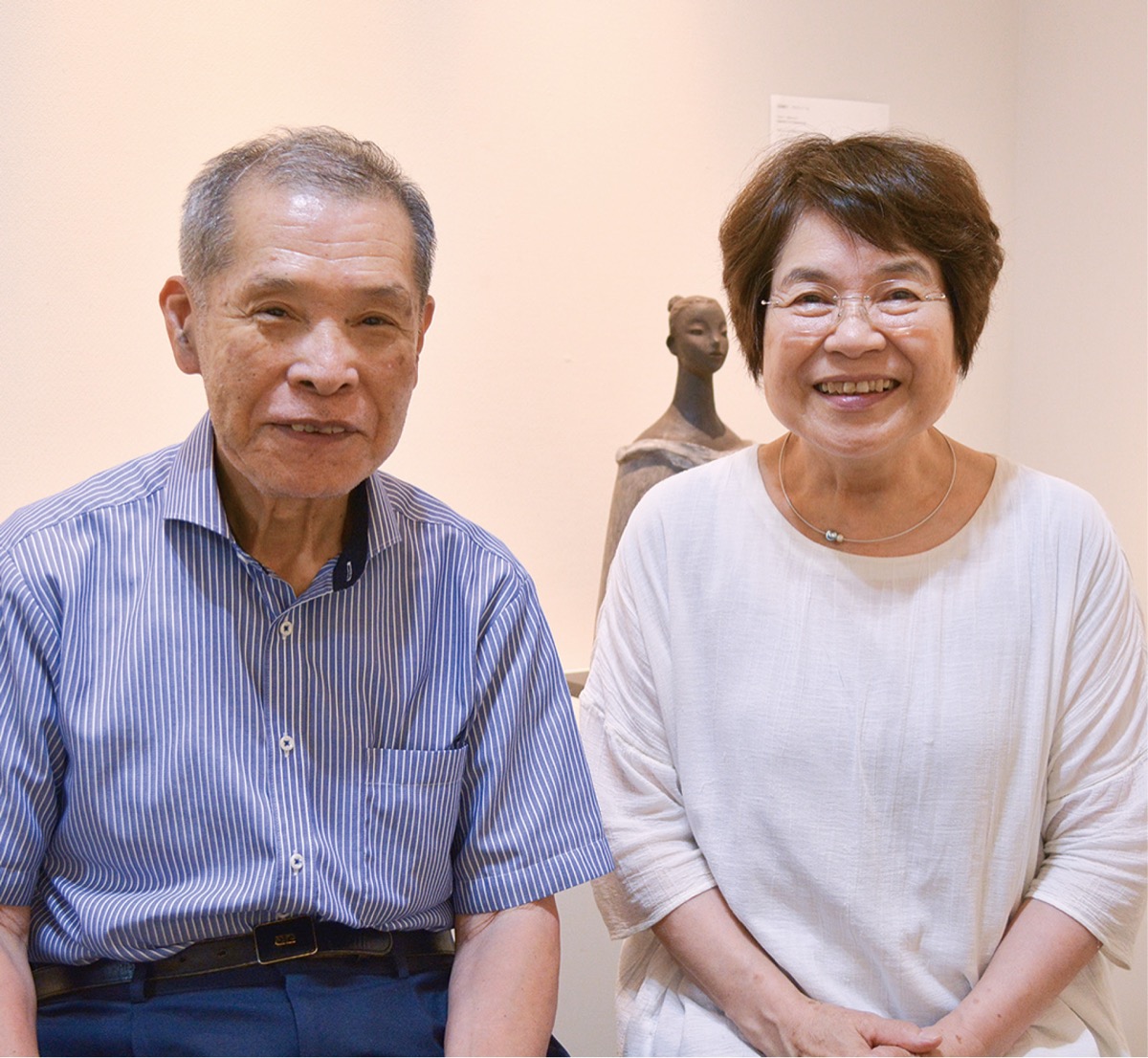 「発想の転換は芸術で」をコンセプトに、オーナーの中澤洋・知津子夫妻=写真=が二人三脚で歩んできた同ギャラリー。今回のグループ展には72人のアーティストの作品が展示された。