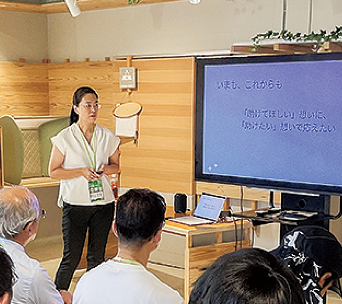 井上さんは、今年5月に藤野に訪問看護ステーションを開所。「すべての命を掬(すく)う」ことを掲げ「赤ちゃんからお看取りまでの看護」について、経験談などを語った。