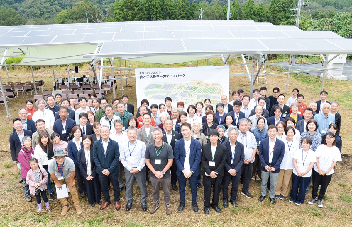 当日は、地元住民や関係者ら約100人が訪れた。あいさつに立った山川勇一郎代表取締役は竣工に至るまでの経緯を説明し、地権者や工事関係者に感謝を述べると、「これからこの場所で食とエネルギーのテーマパーク化を進めるべく、農業とエネルギーの生産を通した地域との交流、農業者の育成、そして春から秋にかけて果物狩りが楽しめるようにしたい」とビジョンを表明した。