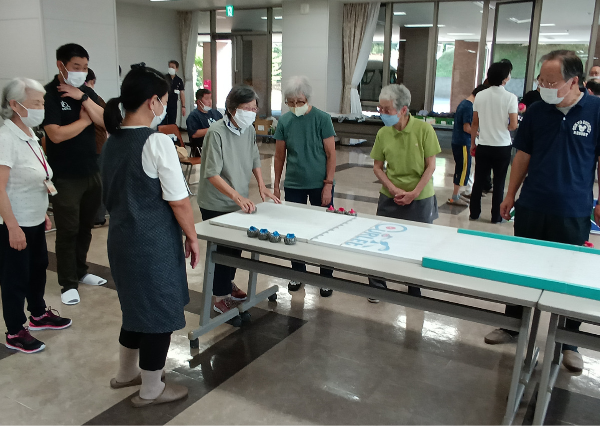 今回は年齢や障害の有無に関係なく、同じフィールドで競技できるスポーツの「カーレット」と「ボッチャ」を体験。参加者は慣れない手つきながらもプレーを満喫し、会場には時折笑い声も響いていた。ゲームの後はコーヒーやお菓子を食べながら、会話を楽しんだ。