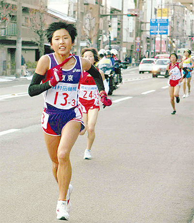23位でタスキを受け取った関根さんは、「一人でも多くの人を抜こう」と駆け出した。小雪が舞い散る寒さの中、次々に抜き去り、13人をゴボウ抜きし10位まで順位を上げ、9分21秒のタイムで区間賞を獲得。「タイムのことはあまり考えてなく、目標は区間3位だった」と振り返る。同区には全国から注目を集める小林由佳選手(栃木)も走り、小林選手とは2秒差だった。また、将来を嘱望される選手に贈られる「未来くん賞」も京都府知事から受賞した。