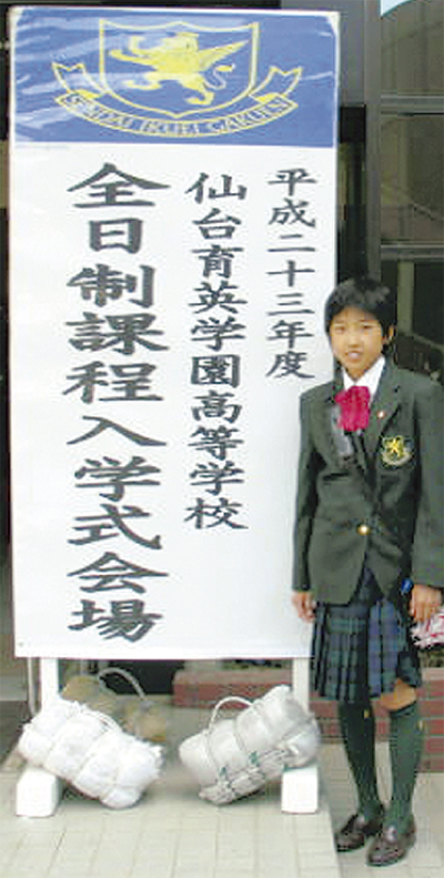 町田市立金井中学校を卒業した関根花観(はなみ)さんが先月29日、震災に見舞われた仙台育英学院高等学校に入学した(=写真・関根さん提供)。関根さんは「被災した地元の人と一緒に復興の手助けができれば」と話している。