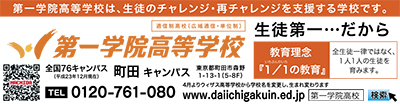 生徒のチャレンジ・再チャレンジを支援する「第一学院高等学校」では高校1・2年生で転校を考えている人達の為の個別相談会を行っている。また中学3年生で4月からの進路が決まってない人も入学がまだ間に合うので一度足を運んでみては。楽しい高校生活が待っているはず。