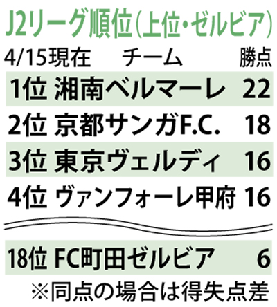 連敗を止めようと挑んだホームでの栃木SC戦(15日・市立陸上競技場)。0―3と敗れ、4連敗となった。同リーグ戦2勝0分6敗で勝点6、順位は18位となった。
