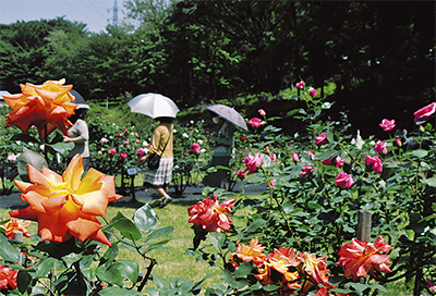 野津田公園のばら広場で現在、バラが見頃を迎えている。