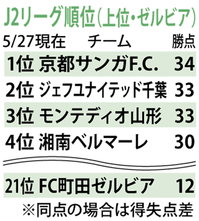5月27日にホーム市立陸上競技場で行われた水戸ホーリーホック戦は0―0で引き分け。3試合ぶりに勝点1を獲得した。これで16戦3勝3分10敗で勝点12となったが、J2順位は1つ落ち21位。