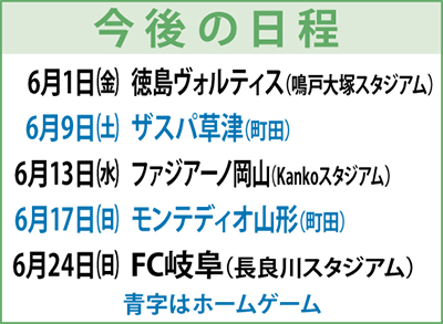 次節は6月1日(金)の徳島ヴォルティス戦。鳴門大塚スタジアムで午後7時キックオフ。次回ホーム戦は6月9日(土)、ザスパ草津戦。町田市立陸上競技場で午後1時キックオフ。スタジアムに足を運んでゼルビアを応援しよう。