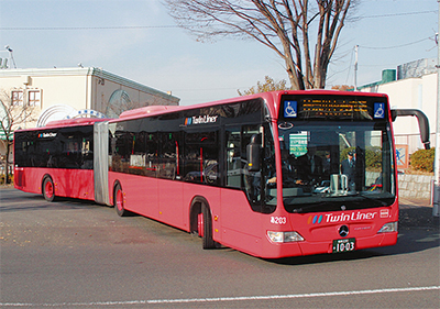 神奈川中央交通株式会社=本社・神奈川県平塚市=は都内初となる連結バス「ツインライナー」4台を導入した。これは町田市が掲げる「まちだ未来づくりプラン」の中で幹線バスと支線バスによる公共交通網を構築する基本政策の第一歩として町田市と共同で導入したもの。