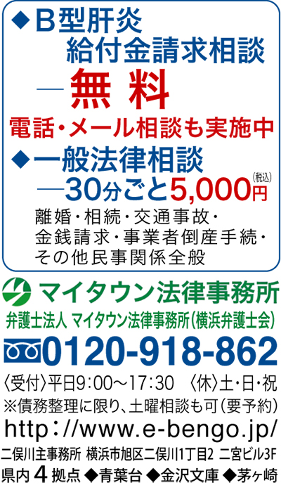 県内に4事務所を構えるマイタウン法律事務所では、B型肝炎の給付金受領についての無料法律相談と電話やメールでの相談も実施している。同事務所の柏木弁護士は「B型肝炎ウイルスに感染していても、その原因が集団予防接種にあると知らされていない人も多くいるようです。弁護士には守秘義務があり、相談内容を第三者に漏らすことはないので気軽に相談してほしいですね」と話す。