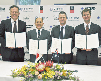 玉川大学(小原芳明学長)は7日、オーストラリア・ビクトリア州の3大学と留学プログラム提携に関する調印式を同国大使館(港区)で行った。この提携で同大の教育活動がより整備される。