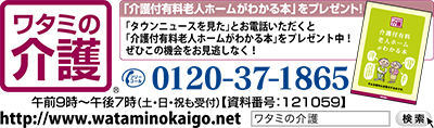 自立支援のための、おむつゼロ、特殊浴ゼロ、経管食ゼロ、車椅子ゼロの4大ゼロを目標に掲げ「ワタミのホームに親を入居させたいと思う子は親孝行だ」と言われるホームを目指す同社の介護サービスをぜひ現地で。今ならホームの資料を希望すると「介護付有料老人ホームがわかる本」をプレゼント中。詳細、見学希望は下記のフリーコールまたはHPまで。