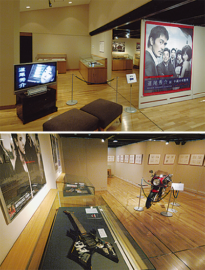 学生時代を町田で過ごしたという道尾さん。台本や撮影に使用された小道具など、映画にまつわるものをはじめ、高校時代に描いた絵本など、小説家を志す以前の姿を彷彿とさせる展示も(=写真下)。【問】本館【電話】042・739・3420