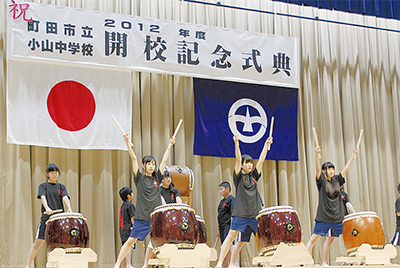 昨年4月に市内20番目の学校として開校した町田市立小山中学校(大川武司校長)で11日、開校記念式典が行われ、石阪丈一町田市長をはじめ市内の各小中学校校長や地元の各町内会会長など多くの来賓が列席した。