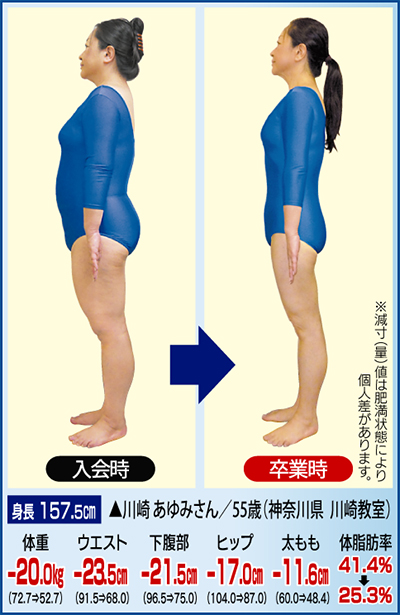 プロポーションアカデミーに通い、独自開発のマシンによって順調に体重が減少。体重計に乗るのが楽しみだったそう。達成感も高く、体を動かすことがぐっと楽に。リバウンドもなく、スタイルを維持している。「いろんな人に、私でも痩せられた痩身教室だよと薦めています」という言葉にPAへの信頼が表れている。