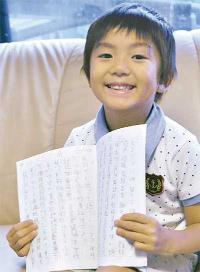 真光寺在住の石田幹太朗くん(6歳)が、日本漢字能力検定(以下漢字検定=公益財団法人日本漢字能力検定協会主催)の6級に挑戦する。6級は小学5年生レベルで、同級への未就学児の受験者は0・02%ほどで、合格者は3〜6人程度と言われる難関。試験日は6月30日。