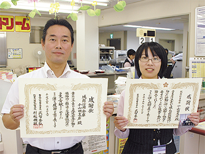 仙田支店長は「感謝状は嬉しいですが、犯罪が起きないことが一番です。今後も地域の方やお客様を大切にし、地域貢献できるよう頑張りたい」と話した。