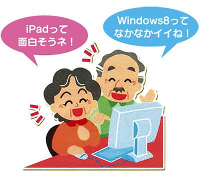 Windows8の基本操作、写真の取り込み、ハガキの作成、インターネット、さらにiPadやスカイプの紹介などを交えて2時間の体験授業。