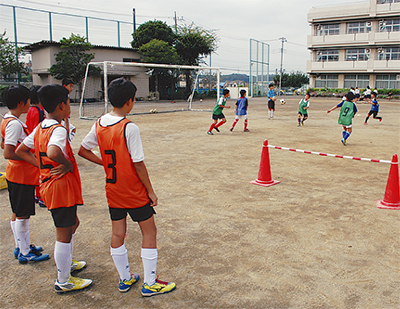 児童たちは校庭や体育館、校舎内の各教室で、野球やサッカー、ソフトテニスやバスケットボール、吹奏楽や美術など興味のある活動に1時間ほど参加。サッカー部では顧問や先輩から指導を受けながら、児童の上手いプレーに対して先輩がどよめくなど、お互いに笑顔も交え楽しそうに汗を流す姿が見られた。