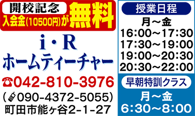 鶴川駅より徒歩5分の場所に少人数制・個別指導の学習塾「i・Rホームティーチャー」が開校した。