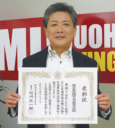 今回の表彰を受け、金子代表取締役は「このほど自動二輪指定前教習も始まり、オートバイ事故も含め、交通事故の防止活動をこれまで以上に職員一同、推進してまいります」と話し、決意を示した。