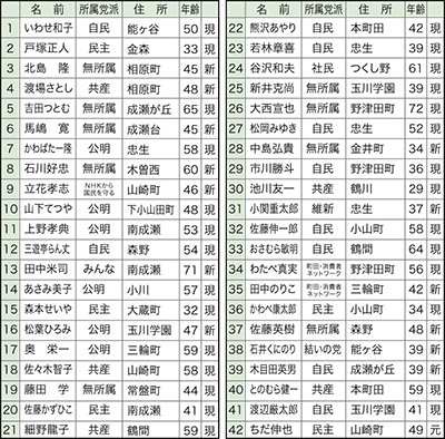 今回引退するのは、田中修一氏(4期)、佐藤洋子氏(3期)、宮坂けい子氏(3期)の3人。