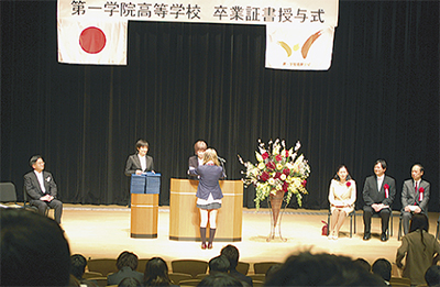 生徒一人ひとりの個性を大切にし「社会で活躍できる人づくり」を理念に掲げている第一学院高等学校。仕事観察やボランティア活動など多くの課外授業の中で生徒が職業観・将来観を育んでいる。3月15日には和光大学ポプリホール鶴川で卒業証書授与式が行われ、今年は61人の生徒が巣立っていった=写真。
