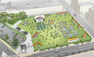 3日(土・祝)〜5日(月・祝)の3日間、芝生広場を「ステージ」「スポーツ」「フード」「いこい」の4エリアに分け、ダンスや音楽の披露、スポーツ体験・ゲーム、地元産の物販・飲食出展、キャラクター撮影会などのイベントを実施。いずれも午前10時開場。