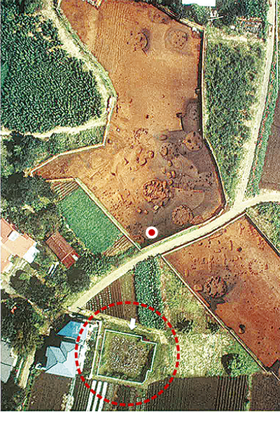 大小の自然礫を帯状に積み上げ、長軸(東西)約9m、短軸(南北)約7mの楕円形になっており、その下には墓跡が30基ほどあり集合墓地となっている。祭祀場として使われていたと考えられ、日常用具以外の特殊遺物も多数発掘された。