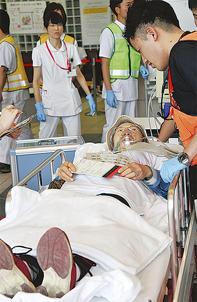 今回の訓練は、徒歩など自力で来院する負傷者や救急車で搬送された重症者をトリアージし、その後の治療を速やかに行えるようにすることが主な目的。トリアージとは災害など非常時に、多くの負傷者の緊急度・重症度を判定し優先順位を決めることで、1人でも多くの負傷者に最善の治療を行うために必要な処置のこと。