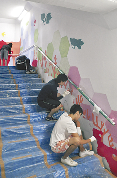 桜美林大学(常盤町)の学生による「桜美林トンネルアートプロジェクト」がこのほど、桜美林地下道のペイントを完成させた。