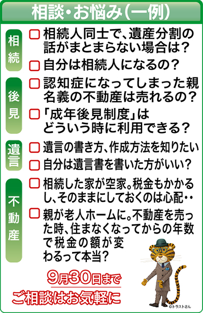 三井住友トラスト不動産・町田センターでは、相続などの個別相談会を9月30日(火)まで行う。費用は無料。申込みは電話で。