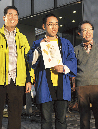 パパロックは、まちだ中央公民館などで無料ライブを定期的に開催している。そこで義援金を呼び掛け、4年ほど20回以上のライブで集った31万6206円の目録を地元の復興を目指す「SAVE TAKATA」に町田市内で手渡した。