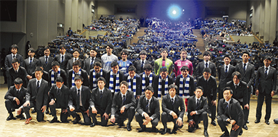 会場には800人を超えるサポーターが集まり、J2リーグでの活躍に期待する熱気に包まれた。