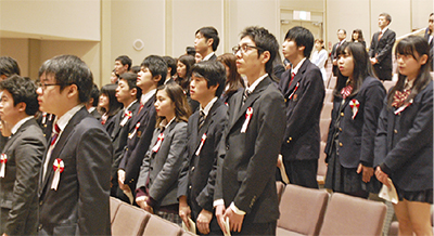 卒業式シーズンの3月を迎え、市内でも卒業式が行われた。町田市民ホールでは9日、市内の通信制高校第一学院高校の3年生43人が卒業式に出席(写真)。 大学に進学する卒業生の一人は「野球ができなくなって全てが嫌になった時期もあったけど多くの人に支えられ卒業できた。まず母と、溶け込める環境を作ってくれた学校には感謝したい。次のステージで頑張ります」と話していた。