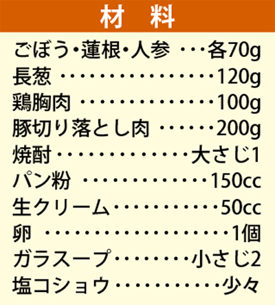 【1】ごぼう、蓮根、人参を大きめに切りフードプロセッサーでみじん切りにしボウルに入れる。