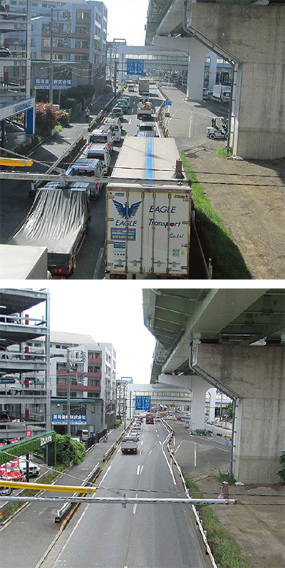 東名入口交差点では開通前の調査時に横浜方面の上りで1070mあった渋滞が開通後は解消。八王子方面の下りでも、開通前1430mの渋滞から開通後310mに減少した。南町田北交差点では、横浜方面の上りで開通前990mの渋滞が開通後の調査時は見られなかった。