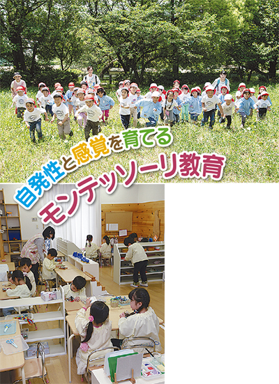 幼稚園の背後には”復活の丘”と呼ばれる学園所有の自然豊かな里山が広がり、園児たちは、その自然の中で四季の移ろいを肌で感じ、豊かな感性が育まれている。園舎の隣には”お仕事のおうち”と呼ばれる、モンテッソーリ教育専用の施設。そこでは、その日やりたい自分の”お仕事”を様々な教具の中から選び活動する中で、『自ら学び、自分自身を成長させる力』が養われている。「その他にも、幼児体育専門の講師による体育指導や外国人講師による英語のレッスンを毎回楽しみながら受けています」と同園。学園の施設を利用して、運動会、クリスマスほか様々な行事も。また、大学の講師による昆虫観察、顕微鏡観察、サッカー教室、野球教室、外国人留学生との交流会、生涯学習センターの学生による読み聞かせなど、多くの経験を通して園児たちの育ちを支援している。