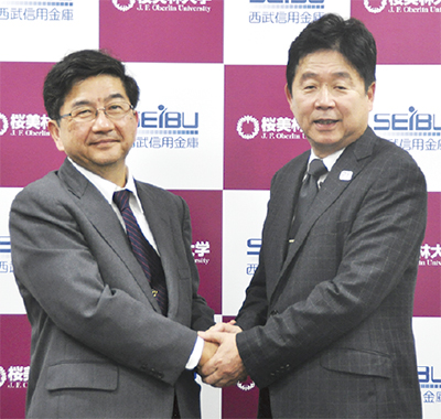各自治体や民間企業、NPO、大学など1000を超す連携先を持つ西武信金は、これまでに19の大学・専門学校と連携し、インターンシップ就業支援などで、学生と中小企業をつなぎ、また起業を考える学生に対し投資を行っている。同信金の落合理事長は「連携を通じ、『学生の若い柔軟な発想』『教授・専門家の知識』から様々な課題を解決し、新たなビジネスを生み出せる」と話し、「留学生と海外進出を考える企業とのマッチングなど、グローバルに展開する桜美林大学ならではの連携ができる」と期待を寄せている。