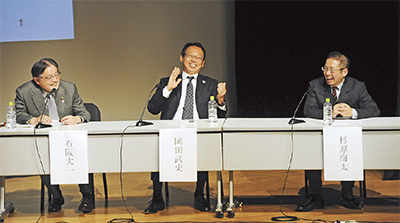 「スポーツ地域振興シンポジウム」が20日、和光大学ポプリホール鶴川で行われ、パネリストに元サッカー日本代表監督・岡田武史氏、FIFAコンサルタントの杉原海太氏、石阪丈一町田市長が登壇し、スポーツで街が一つになるということについて話し合った。