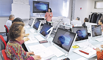 全国に100校、毎月2万4千人が通っているメーカ系唯一の信頼と安心のブランド、それが富士通オープンカレッジ。町田校は今年で開校10年目を迎える中高年・初心者向けの教室だ。