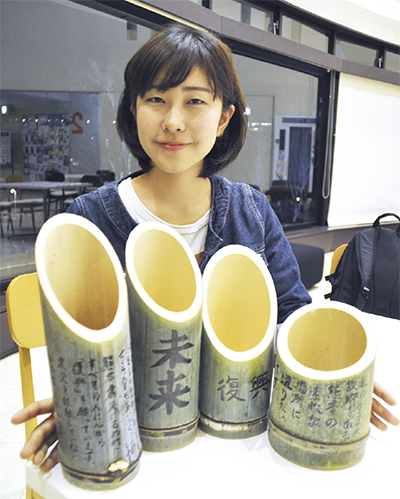 明日14日は、多摩キャンパスを会場に復興の祈りを込めた竹灯篭を行う。