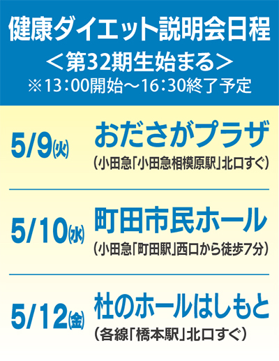 今回はダイエットをスタートする前の説明会で、スタートは説明会後4カ月のサイクルで始まる。まずは、どんなダイエットなのか聞いてみては。
