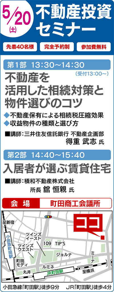 そこで5月20日(土)、三井住友信託銀行と三井住友トラスト不動産、積水ハウスとの3社共催で不動産投資セミナー『まさか自分が大家さんに!?』を開催する。参加費無料。