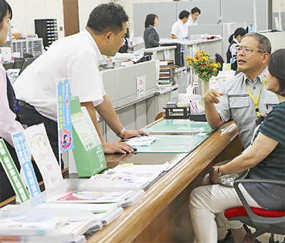 警察・金融機関が被害者を無くそうと同信用金庫原町田支店(森義範支店長)で16日、大金を引き出そうする被害者役を警察官が扮し、シミュレーションが行われた=写真。対応した職員は、「お客様の動作・言動などに注意して、被害にあわれないようにしたい」と話していた。